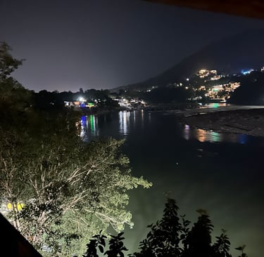 Winter dusk, mountain lights, and the steady song of the Ganga.